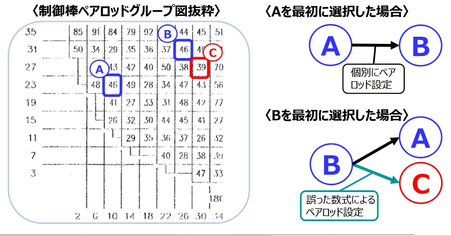 04:00 6号機 原子炉停止中の制御棒1本の引き抜きによる運転上の制限の逸脱について 2026年1月19日 東京電力ホールディングス株式会社 柏崎刈羽原子力発電所 ○制御棒引抜インターロック確認 原子炉停止中(原子炉モードが「燃料取替」)のみの安全機能の確認であり、起動時や運転中は実施しない 制御棒1本を引き抜いた状態で他の制御棒を操作するための選択をしても、引抜防止機能(インターロック)が働き、警報が発報することを確認する なお、6号機(ABWR)の水圧制御ユニットは、1基で2本の制御棒を動かす(ペアロッド)ため、ペアロッドの制御棒2本を動かす選択をした場合は、引抜防止機能は働かず警報も発報しない ※ペアロッドの制御棒は2本抜いても未臨界状態が保たれる ○事案概要 2026年1月17日(土)、6号機起動前の制御棒引抜試験において、当該制御棒の引き抜きを実施後、ペアロッド以外の制御棒を選択したところ、インターロックが働く際の警報が発報されない事案が発生 試験を中止し、引き抜いた制御棒は全挿入位置に戻し、安全を確保 また保安規定で要求される措置として、制御棒の引抜操作ができないよう全制御棒の電源をオフ これまでも定期検査中などに同じ試験を行っているが、同様の事案は発生していない なお運転員は、原子炉モードが「燃料取替」である時、ペアロッドでない他の制御棒を引き抜かないよう手順で定めている ![]() ○原因 原因調査の結果、制御棒のペアロッドの設定データに複数誤りがあることが判明 Aを選択した際のペアロッドはBと正しく設定されていたものの、Bを選択した際のペアロッドがCにも設定されていた(このため、引抜防止警報が発報されなかった) 原因としては、Aは個別にBを設定していたものの、Bは誤った数式によりCにも設定していた ![]() ○運転上の制限の逸脱からの復帰まで 当該制御棒のペアロッド設定に誤りがあることを確認 ペアロッドについて正しい設定に見直し そのうえで、当該制御棒について引抜防止機能が働いていることを示す警報が発報することを確認 1月18日午後8時16分に、運転上の制限の逸脱から復帰と判断いります。 ○現在対応中 運転上の制限の逸脱から復帰したことをもって、全ての制御棒の動作確認が可能 現在、すべての制御棒について、ペアロッドが正しく設定されていること、ペアロッド以外の制御棒203本に対して警報が発報することを確認中 ○水平展開 発電所の各設備については、使用前事業者検査、定期事業者検査で健全性を確認 6号機の制御システムのうち、同様な数式の設定となっているものを洗い出し、問題がないことを確認(1月18日までに確認済) |