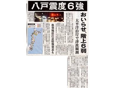 | (65) 東奥 12/12 地震の建物被害 青森県内450件 |