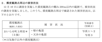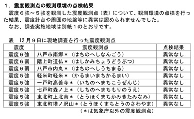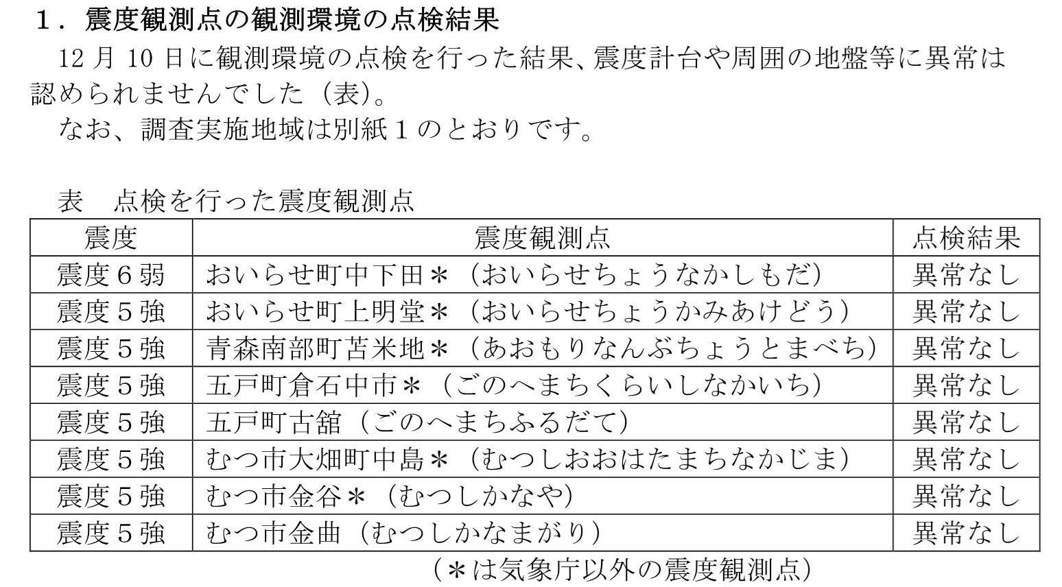 | (4) 気象庁 12/10 12月8日23時15分の青森県東方沖の地震における現地調査結果(第1報) |