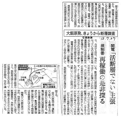 大飯原発、きょうから断層調査 規制委 再稼働の是非探る | 日経新聞 | 2013/07/27 |