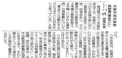 大飯や高浜原発 再稼働「夏までに」 関電社長 | 東奥日報 | 2014/01/08 |