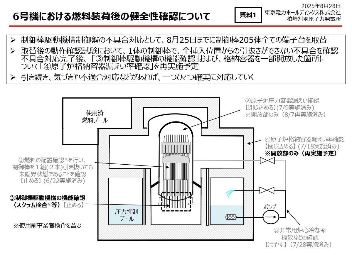 | [2025_08_28_09]6号機における燃料装荷後の健全性確認について(東京電力_柏崎刈羽原子力発電所2025年8月28日) |