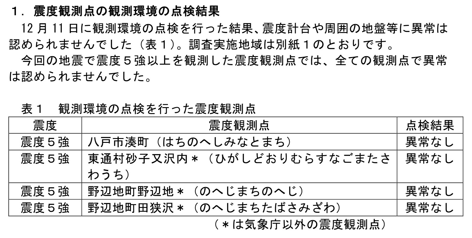 | (4) 気象庁 12/10 12月8日23時15分の青森県東方沖の地震における現地調査結果(第1報) |